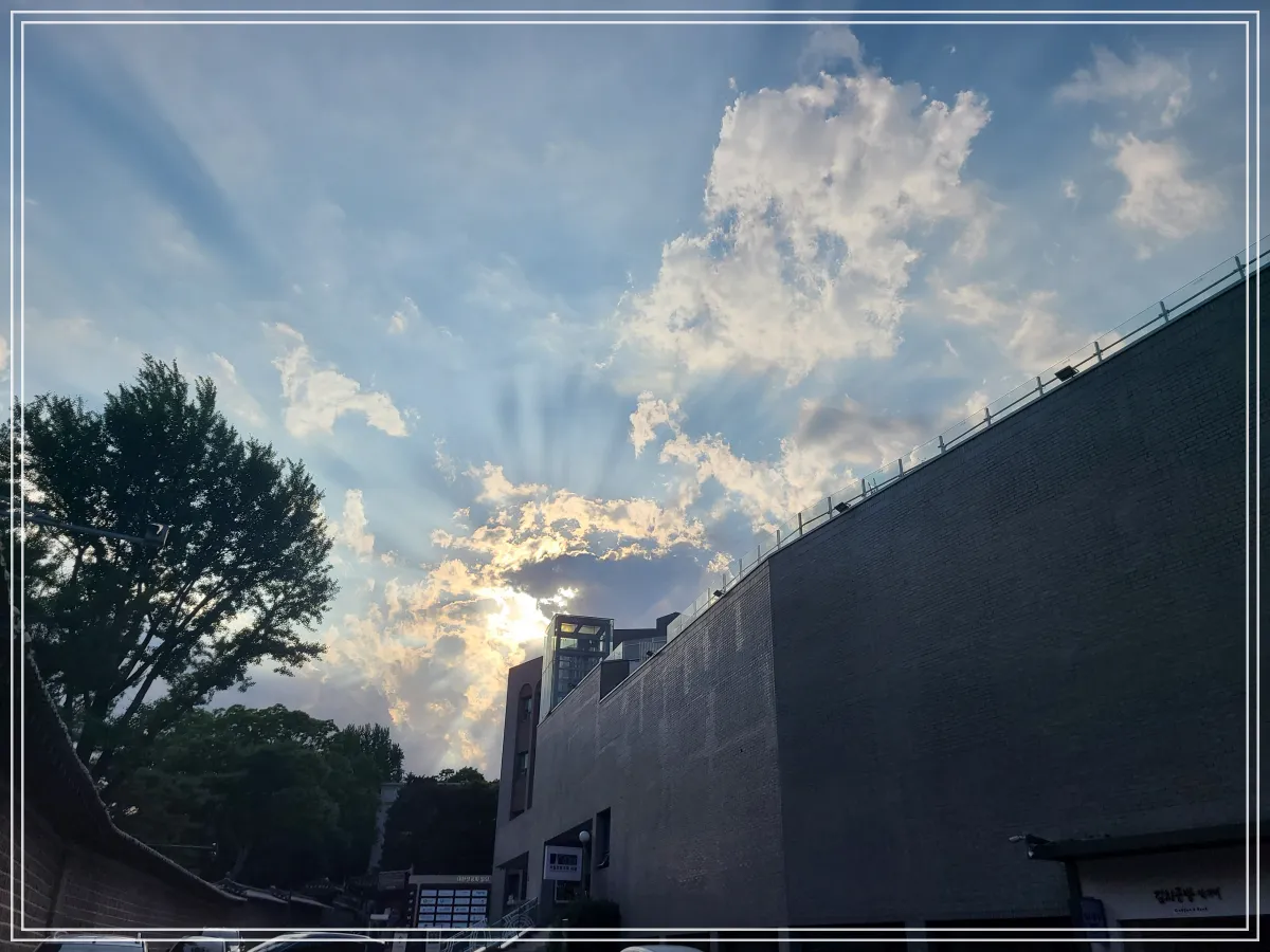 이 날은 맑다가 갑자기 소나기가 내렸는데 소나기가 그친 후 세실 극장쪽 하늘이 멋있어서 사진을 찍어봤다.